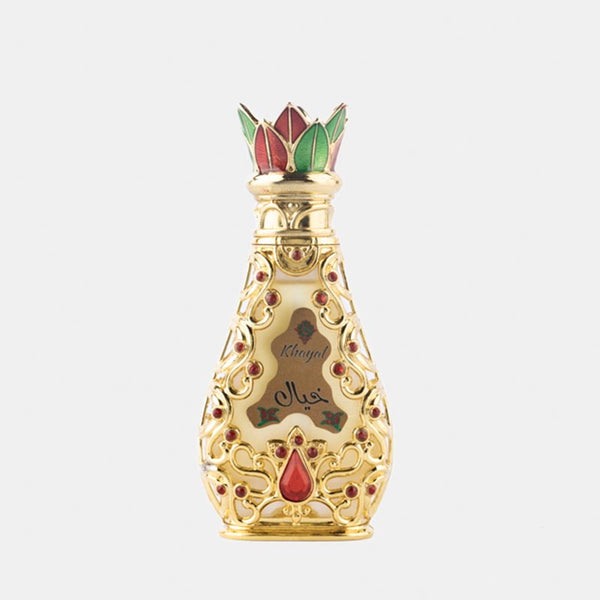 Khayal is a luxurious non-alcoholic attar for men and women. It opens with inviting notes of black currant, pineapple, apple, lemon, and bergamot. The middle notes bloom with rose, jasmine, and patchouli. The base offers the warmth of vanilla, amber, sandalwood, and oakmoss.