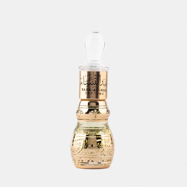 Badr Un Nisa is a refined, non-alcoholic fragrance crafted for both men and women. This concentrated attar opens with the fruitiness of pear, apple, peach, grapefruit, and mandarin orange, bringing in a fresh introduction. At its heart, a bouquet of rose, jasmine, geranium, and orchid creates floral richness. The scent settles into warm, earthy base notes of sandalwood, patchouli, musk, and cedar.